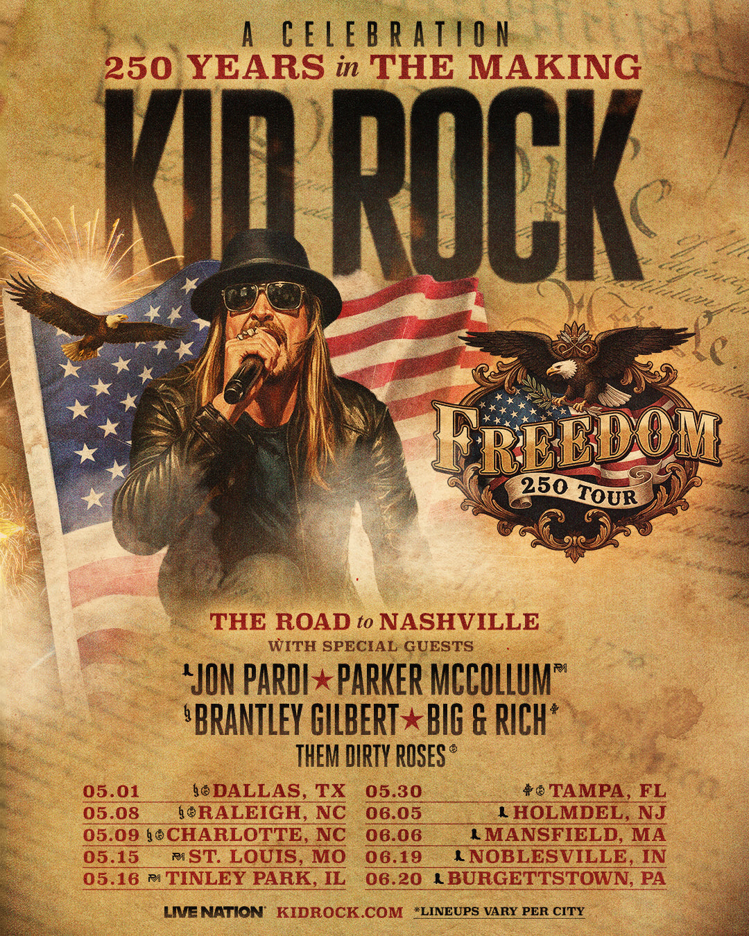 Get ready to rock on Kid Rock’s Freedom 250 Tour - The Road To Nashville with very special guests on select dates! Tickets on sale Friday, Feb 13th @ 10AM local.