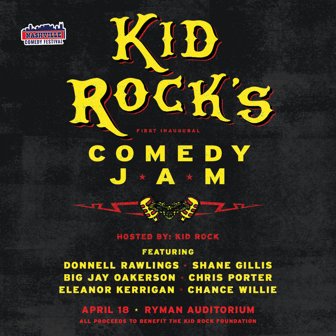 3rd annual Kid Rock’s Comedy Jam returns to the historic Ryman Auditorium April 7, 2025 during the 2025 Nashville Comedy Festival.
